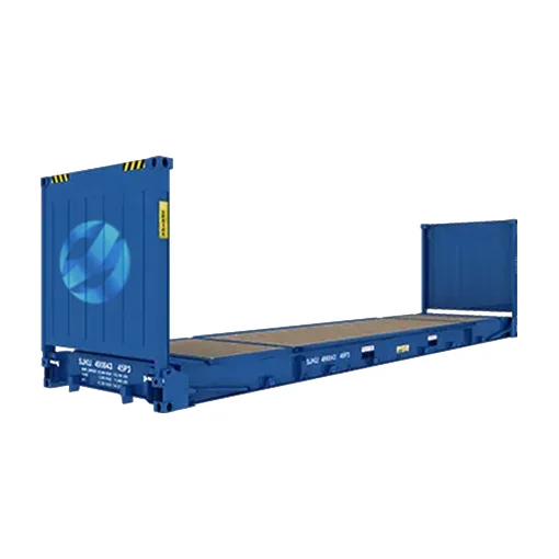 The 40' Flat Rack Container is ideal for larger, heavier, and more oversized cargo. It is commonly used for long materials, large pieces of machinery, and project cargo. Its open-frame structure allows easy access for loading and unloading, making it suitable for handling large and irregularly shaped items.